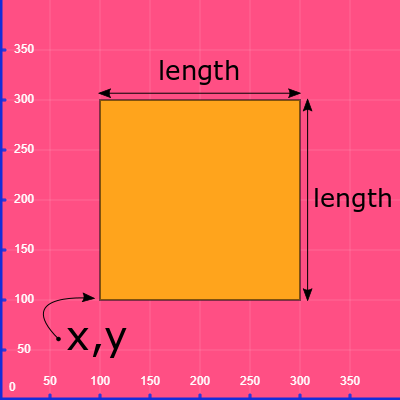 <table><thead><tr><th width="167">Input</th><th>Description</th></tr></thead><tbody><tr><td>x</td><td>x co-ordinate of the bottom left corner</td></tr><tr><td>y</td><td>y co-ordinate of the bottom left corner</td></tr><tr><td>length</td><td>length of the square (length in x direction and y direction)</td></tr></tbody></table>